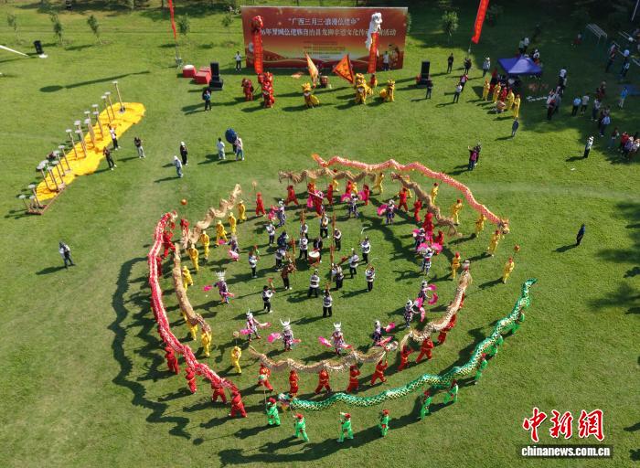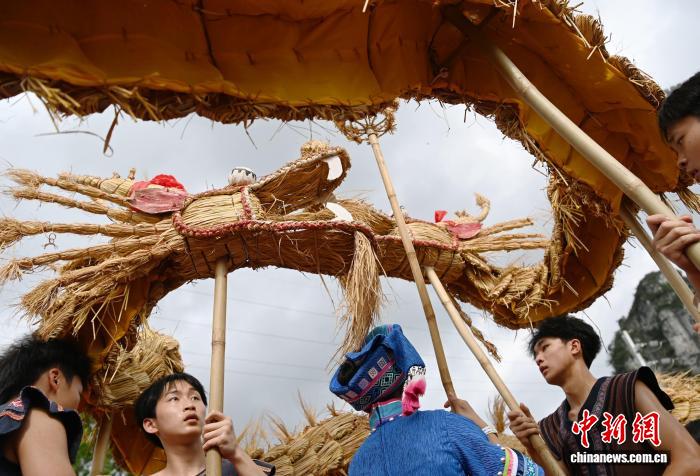 图为正在广西罗乡仫佬族自制县体育主题,公众正在舞草龙。受删师 摄