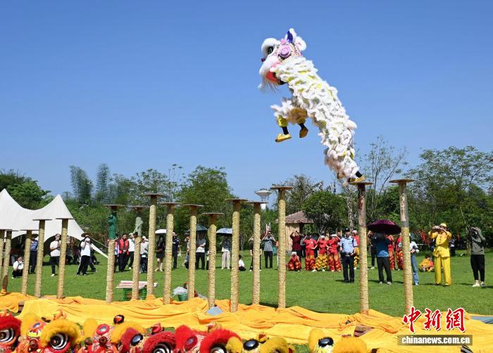 图为正在广西罗乡仫佬族自制县小少安镇木栾农庄,公众正在停止舞狮上演。受删师 摄
