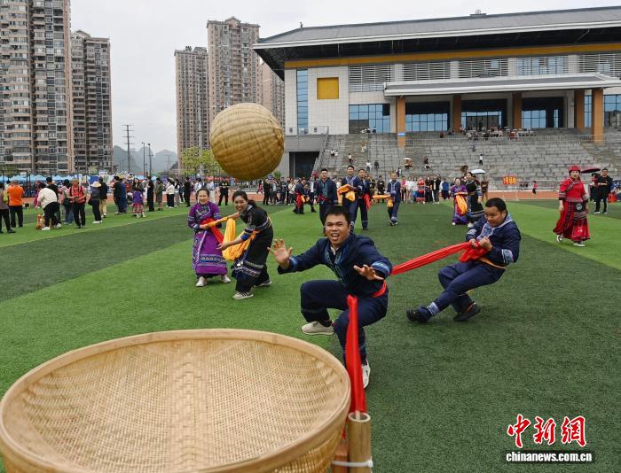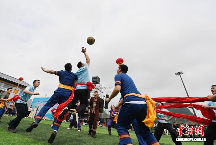 图为正在广西罗乡仫佬族自制县体育主题,参赛队员正在停止竹球角逐。受删师 摄