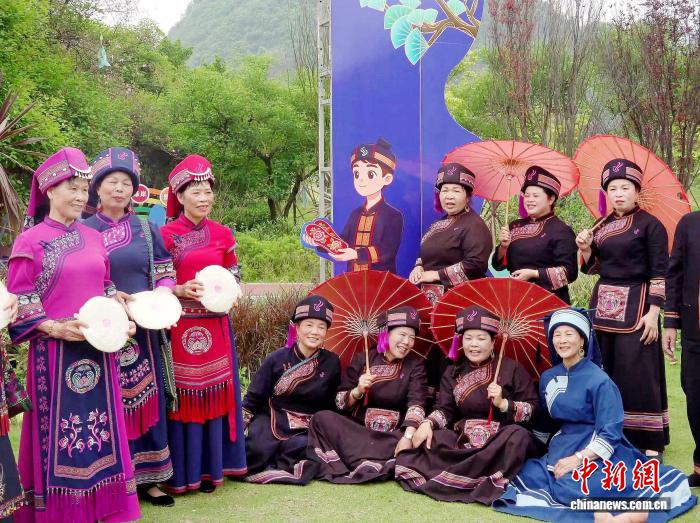 图为公众正在演唱仫佬族古歌。覃义琛 摄